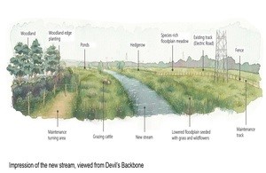 Artist’s impression of Oxford Flood Scheme, viewed from Devil’s Backbone