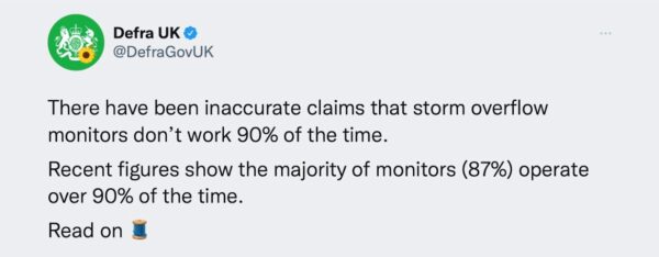 Defra have responded (22/8/22) to the recent coverage around recent surface water flooding and storm overflow discharges, including the claims concerning the faulty sewage monitors in England and Wales.