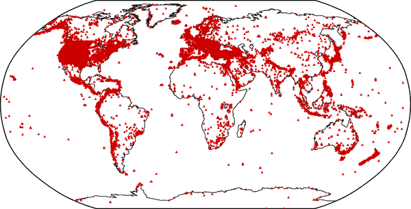 A (probably incomplete) map of seismic stations from around the world.