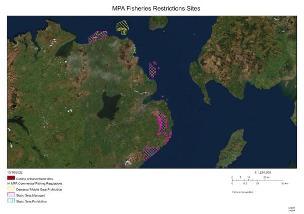 The Marine Protected Areas (Prohibited Methods of Fishing) Regulations (Northern Ireland) 2022 came into operation from 1 January 2023, prohibiting demersal mobile gear (bottom-towed) in nine inshore MPAs, alongside management of pot fishing activity.