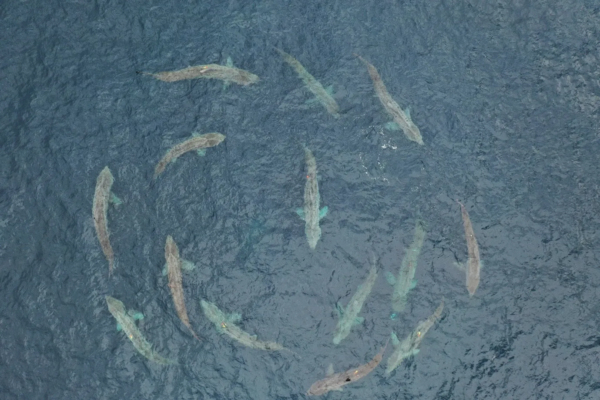 The team found that the sharks in circle formations were equal numbers of sexually mature male and females and were not filter-feeding. Some females had a paler body colour than males, a difference seen during courtship and mating behaviour in other shark species.