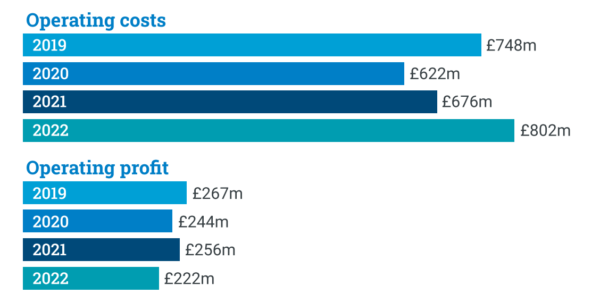 However, total operating costs increased by 19%, and higher fish prices could not completely compensate for the high fuel bill. The forecasted total operating profit of the fleet was £222 million in 2022, a 13% decrease from 2021 figures.