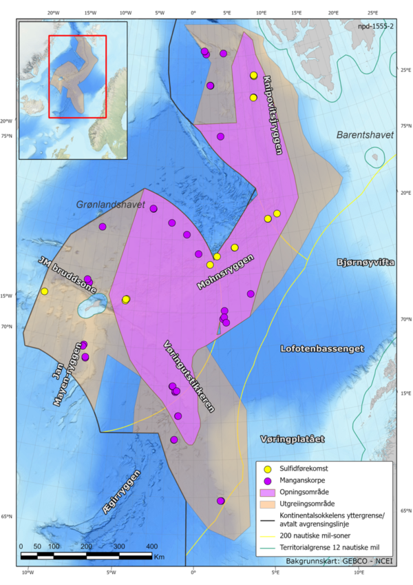 Area open for deep sea mining shown in purple. Source: Norwegian Offshore Directorate
