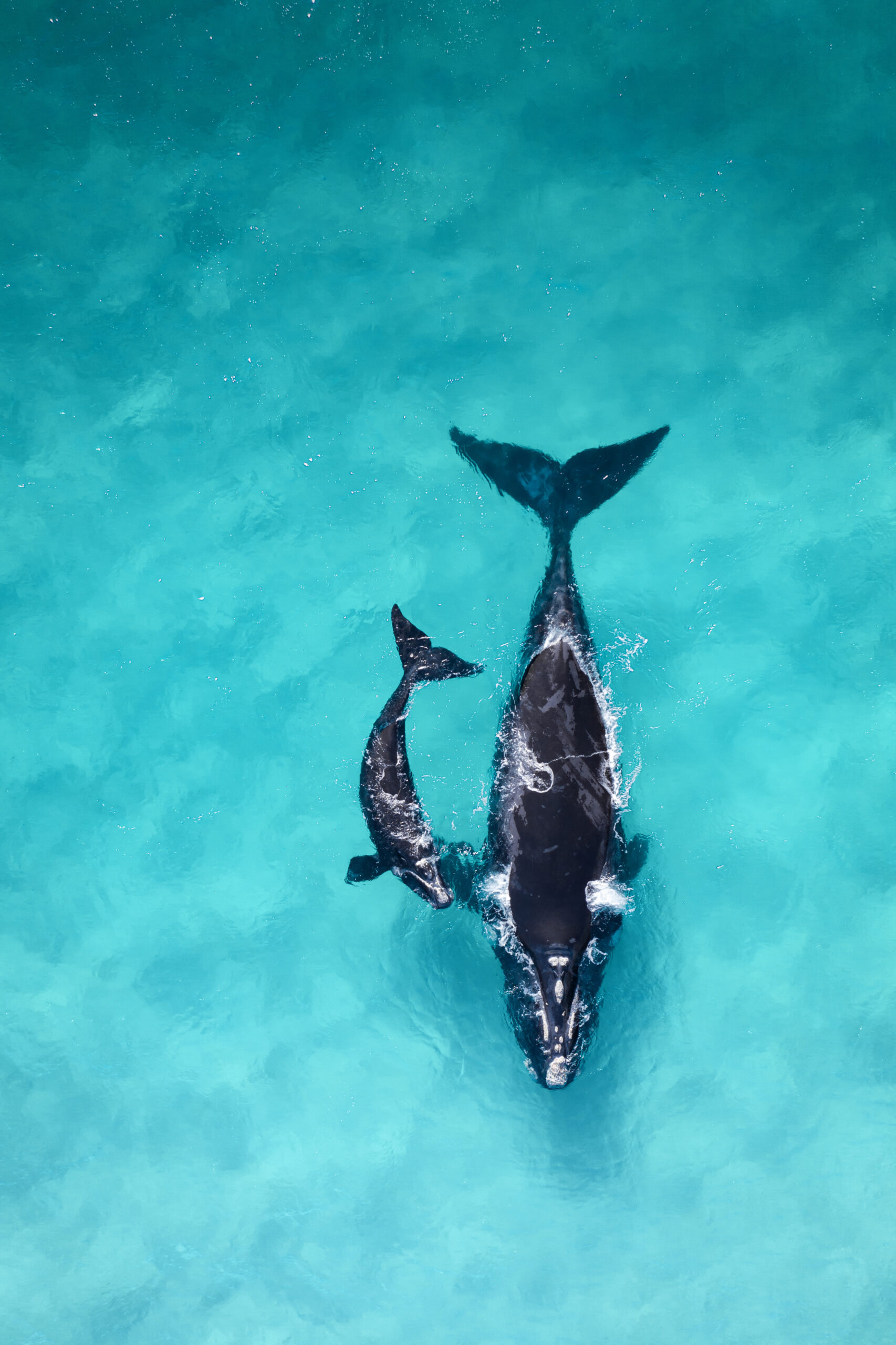 Mother and calf Southern Right Whale in shallow water of Cape Naturaliste, Western Australia |