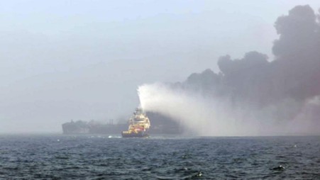 The tanker was carrying 130,000 barrels of jet fuel. But that amount doesn’t account for the heavy diesel fuel powering the vessels themselves.