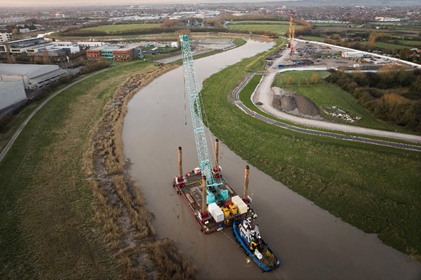 A major milestone has been reached in the construction of the Bridgwater Tidal Barrier with the arrival of a jack up barge from Liverpool.