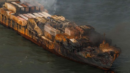 The Solong cargo ship after it collided with an oil tanker in the North Sea. Photo: EPA-EFE/REX/SHUTTERSTOCK