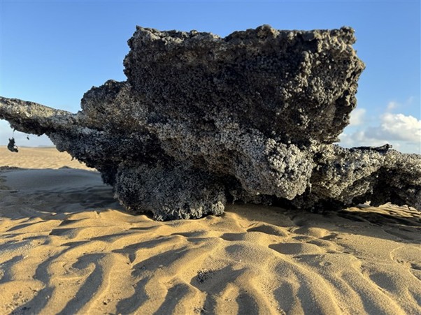 A photo of plastic pellets on the shoreline at Titchwell Marsh in King’s Lynn, Norfolk, following the collision in the North Sea. Photo: RSPB/PA