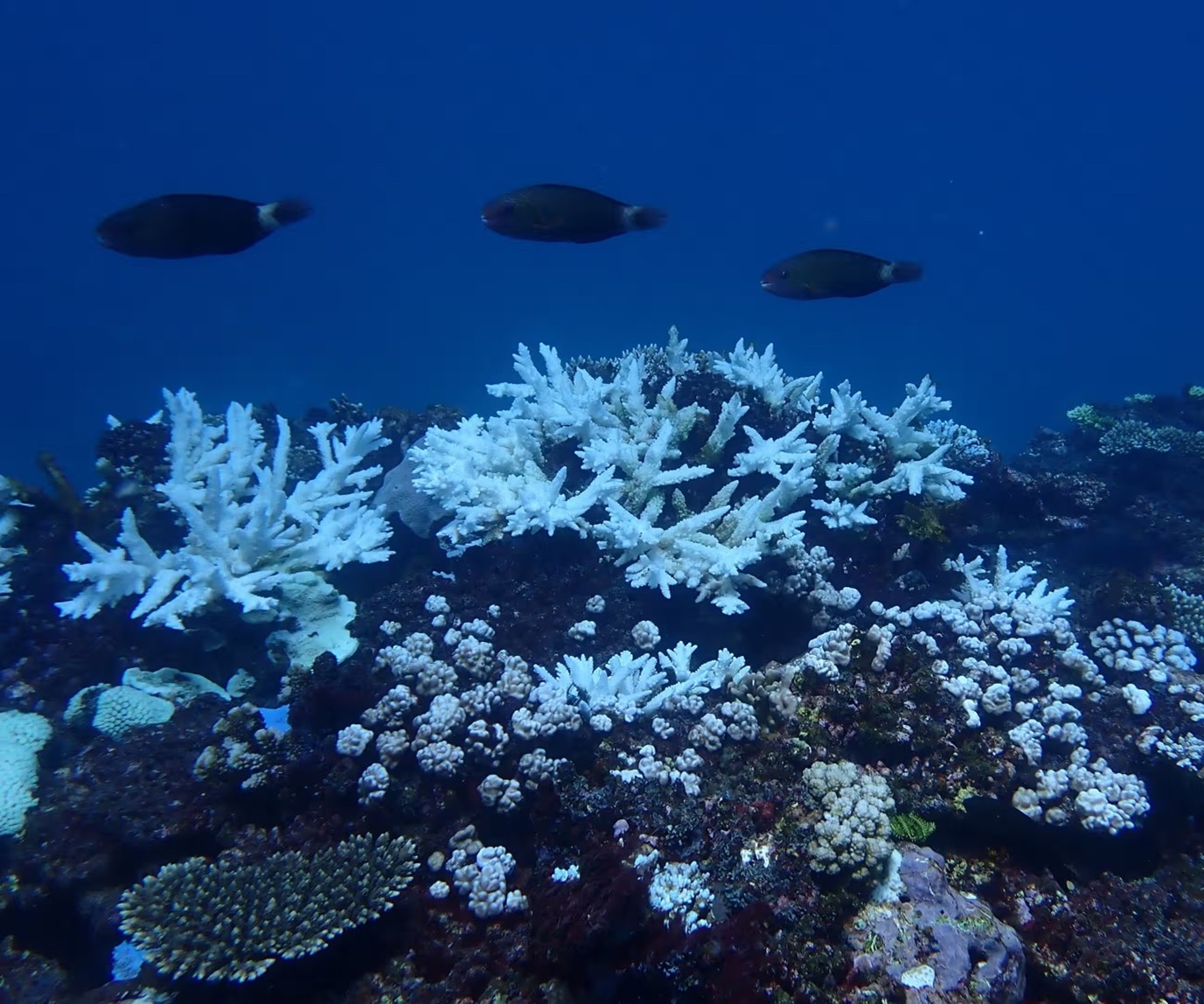 Image description: Bleaching at Lakeside Reef Front, Ningaloo. Photograph: Zoe Richards/Curtin University / The Guardian.