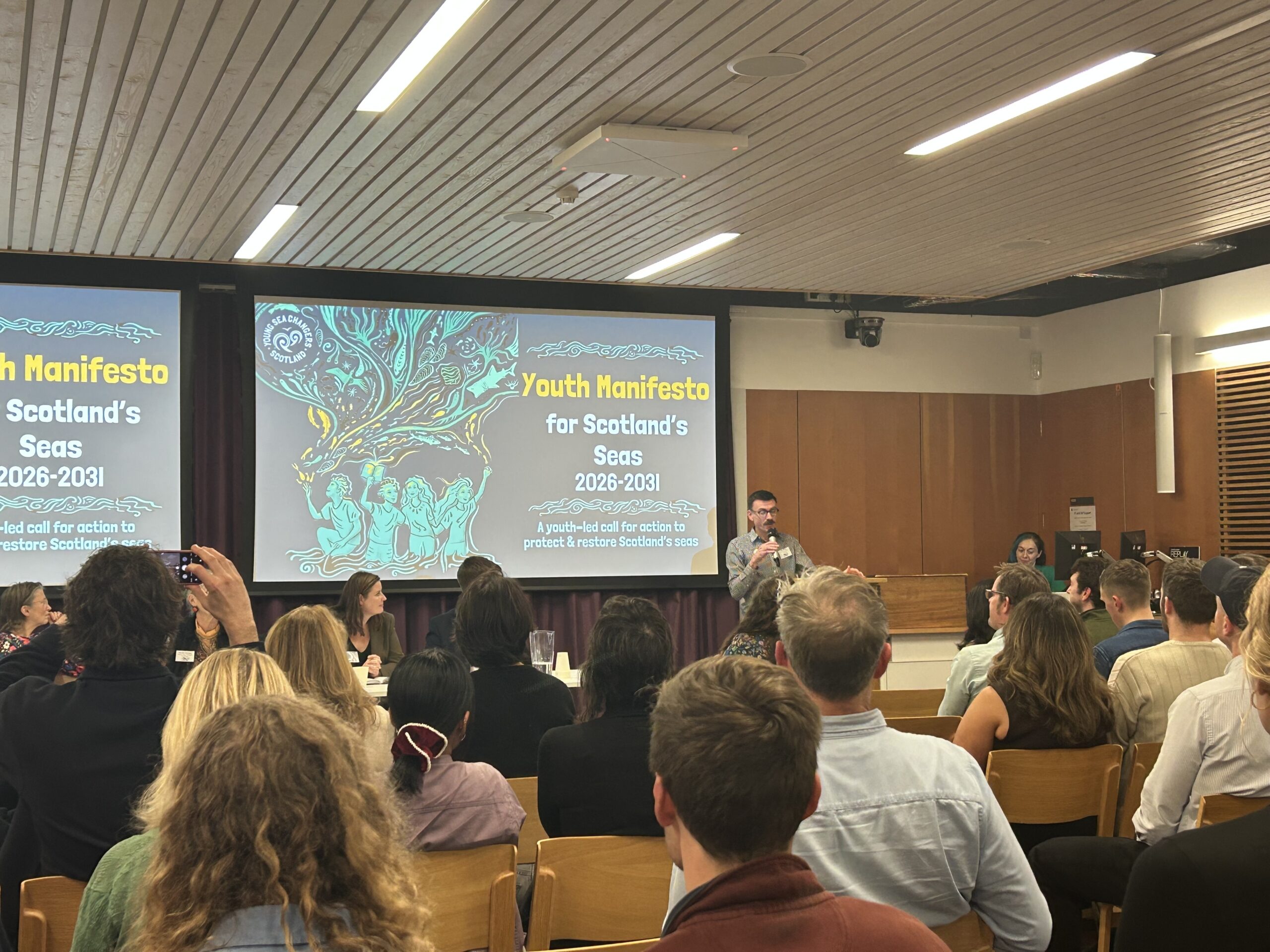 The manifesto was unveiled during the Sea Scotland Ocean Hustings, which brought together representatives from Scotland’s main political parties, NGOs, and community voices to debate the future of Scotland’s seas. Youth delegates presented the manifesto to party representatives during a roundtable event immediately prior to the hustings.